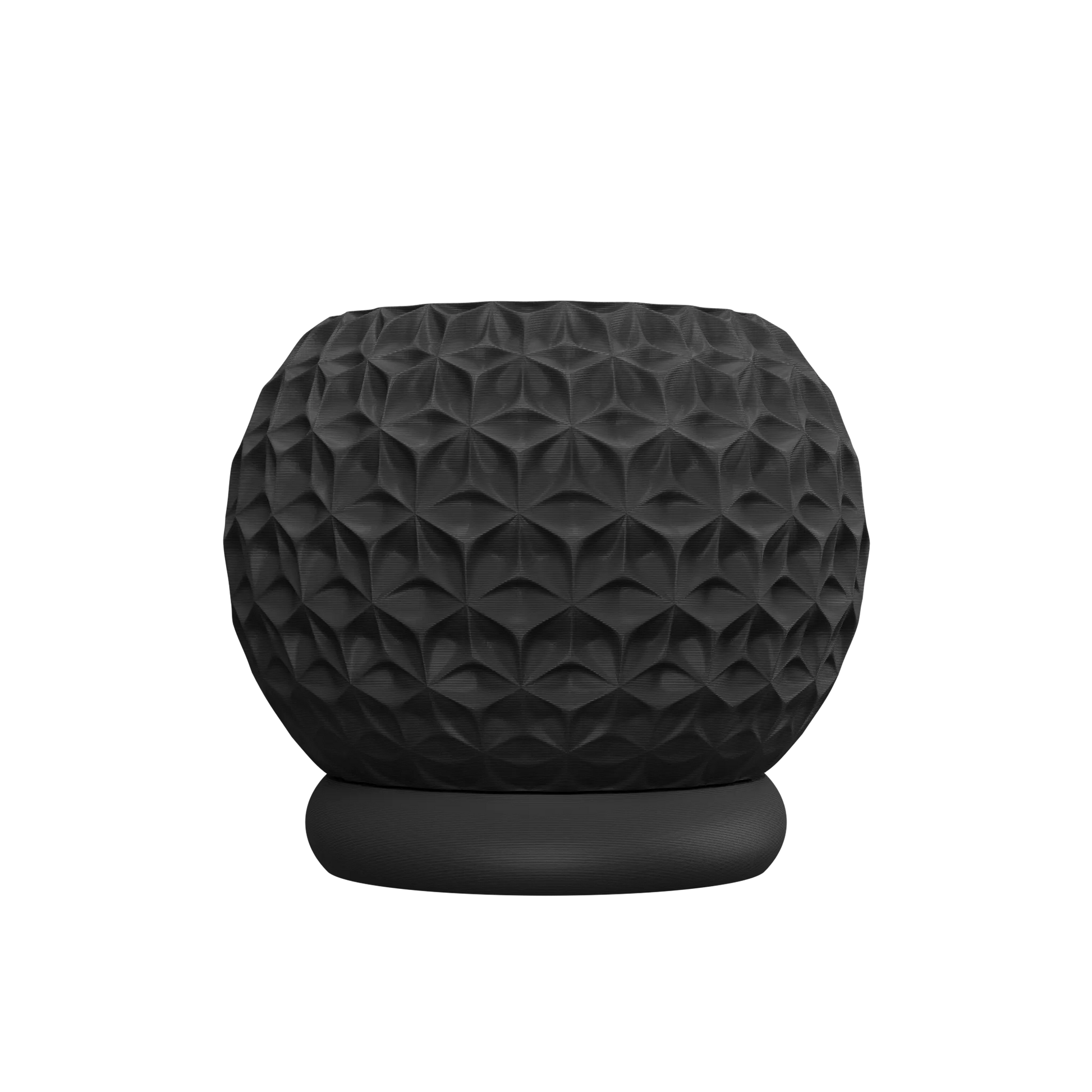Le Pot décoratif Trihex se distingue par sa silhouette sphérique et sa surface captivante, entièrement sculptée d'un motif géométrique trihexagonal.