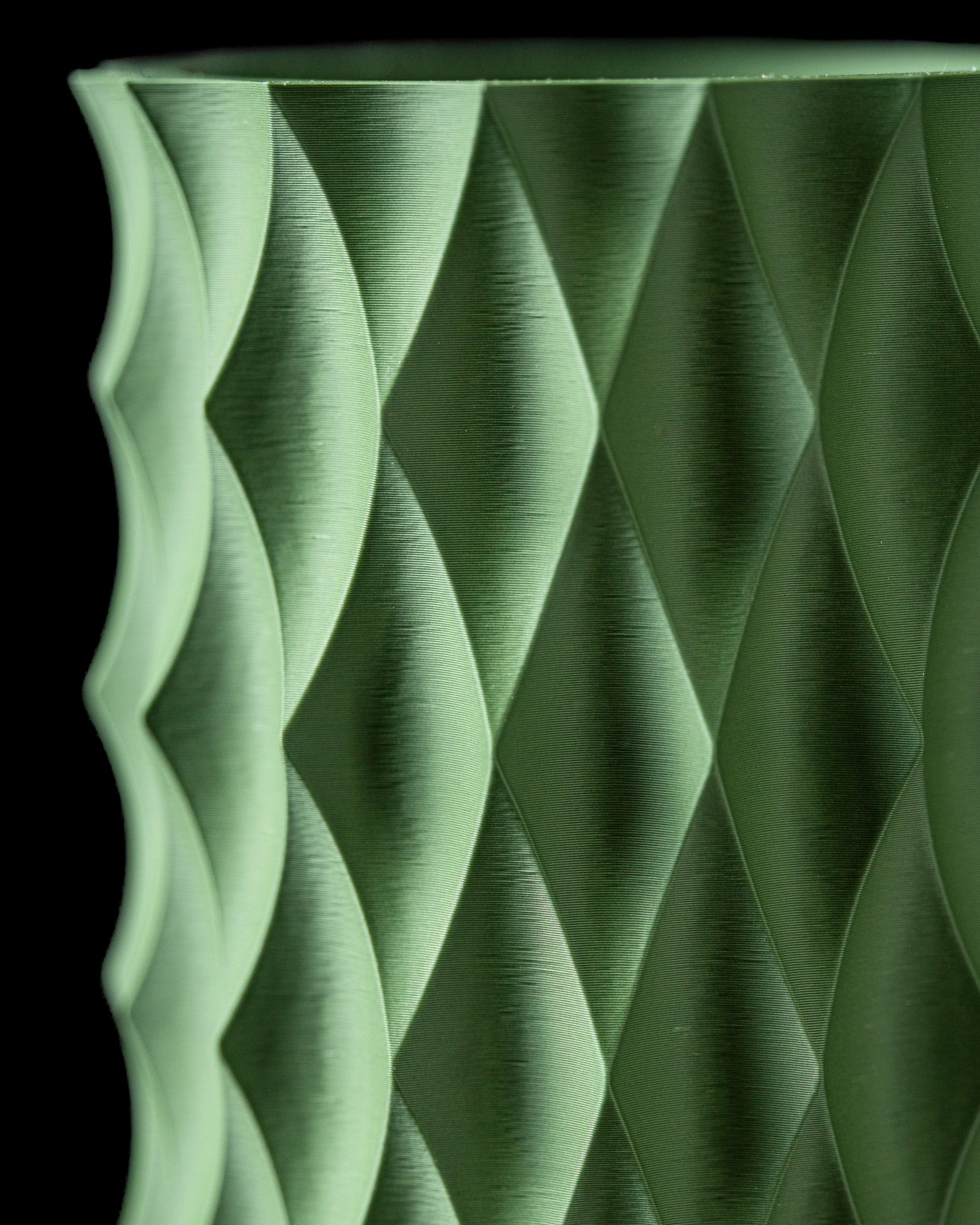Le Vase Diamond se distingue par sa silhouette cylindrique ondulée et sa texture géométrique aux facettes captivantes.