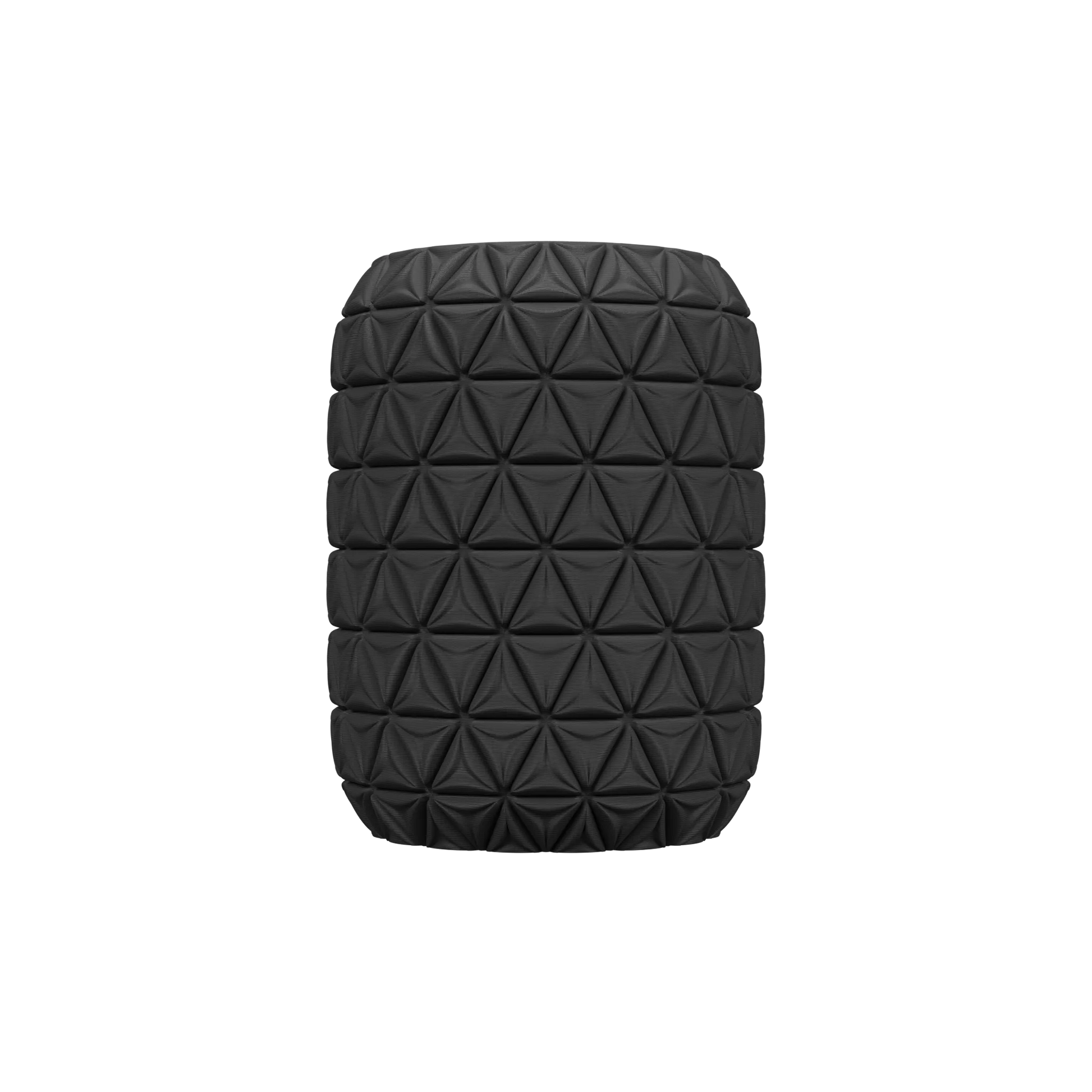 Le Vase Trivo se distingue par sa silhouette cylindrique et sa surface entièrement recouverte d'un motif triangulé en relief, créant une pièce au caractère affirmé.