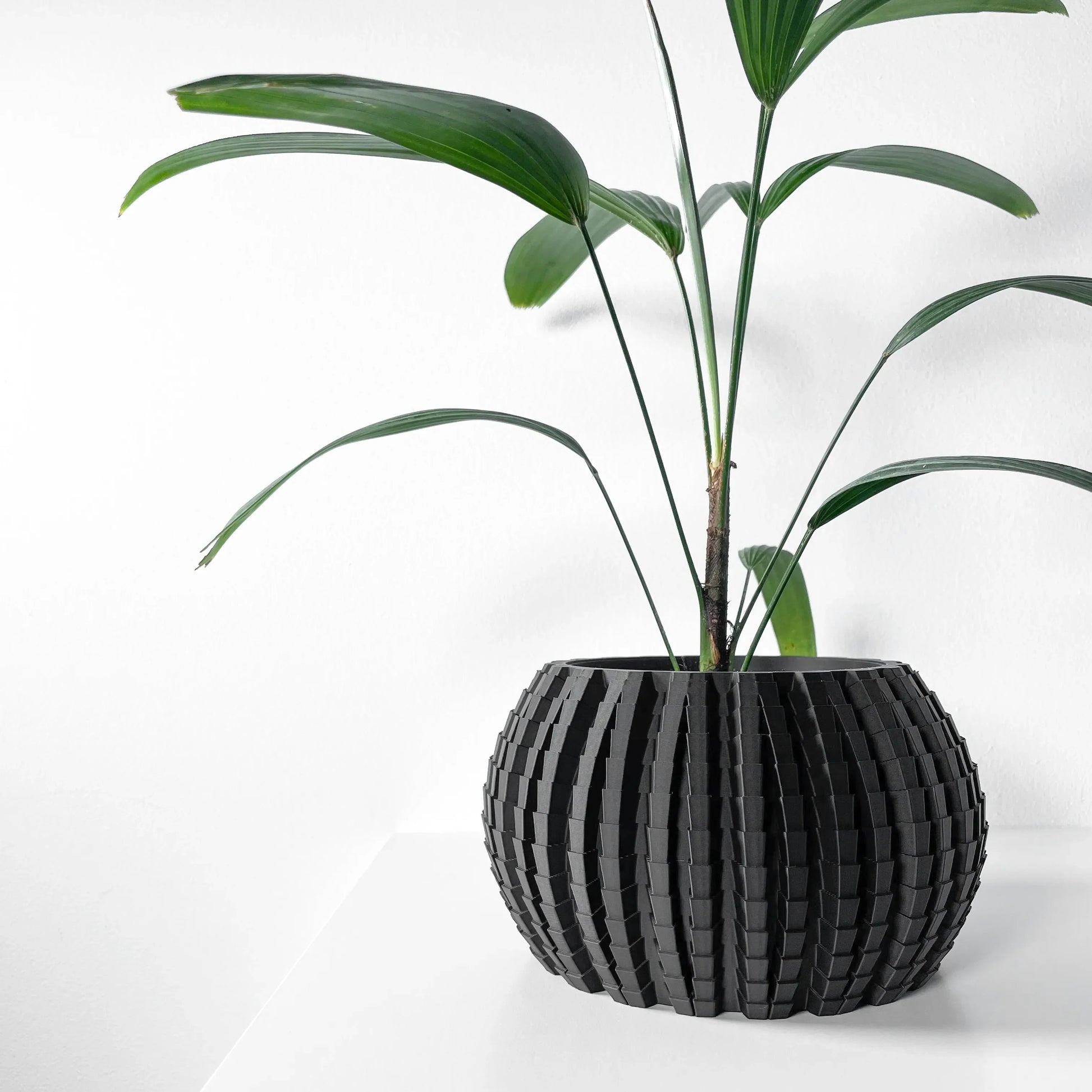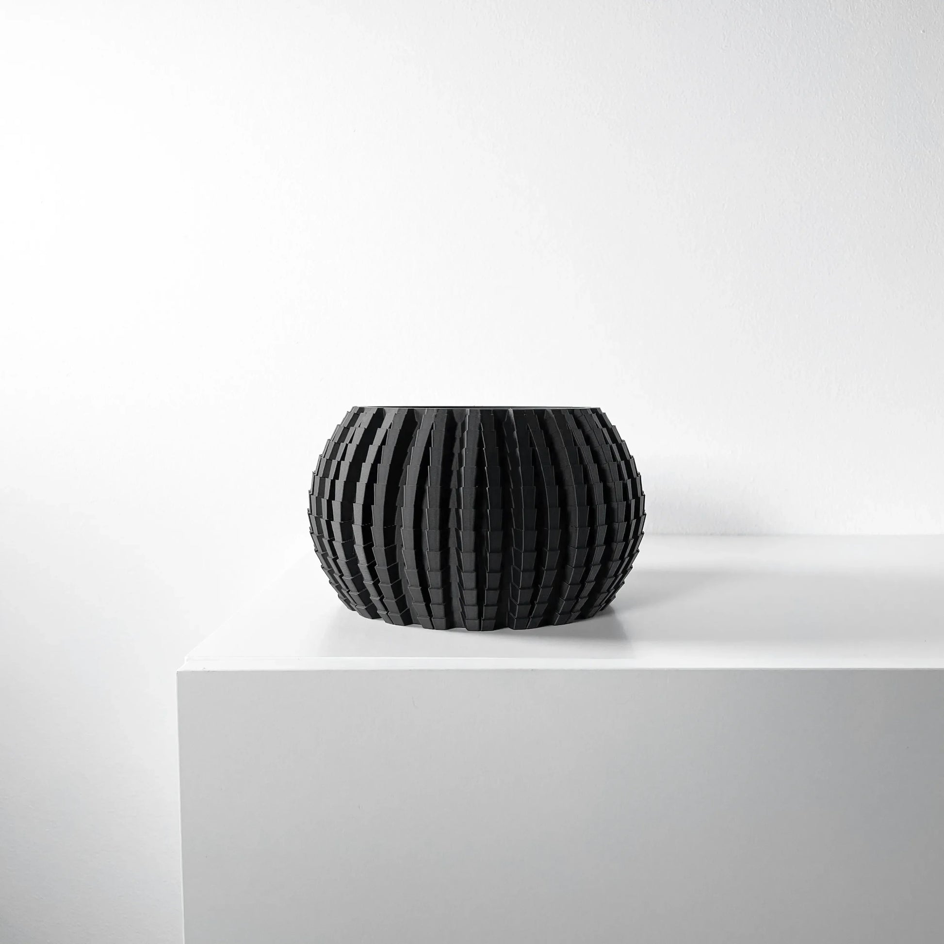 Le sue curve generose sono punteggiate da profonde linee verticali, creando un affascinante gioco di ombre e riflessi. Ogni sfaccettatura della sua texture scanalata cattura lo sguardo, trasformando questo vaso in un vero e proprio pezzo scultoreo che dona carattere e modernità ai vostri interni.