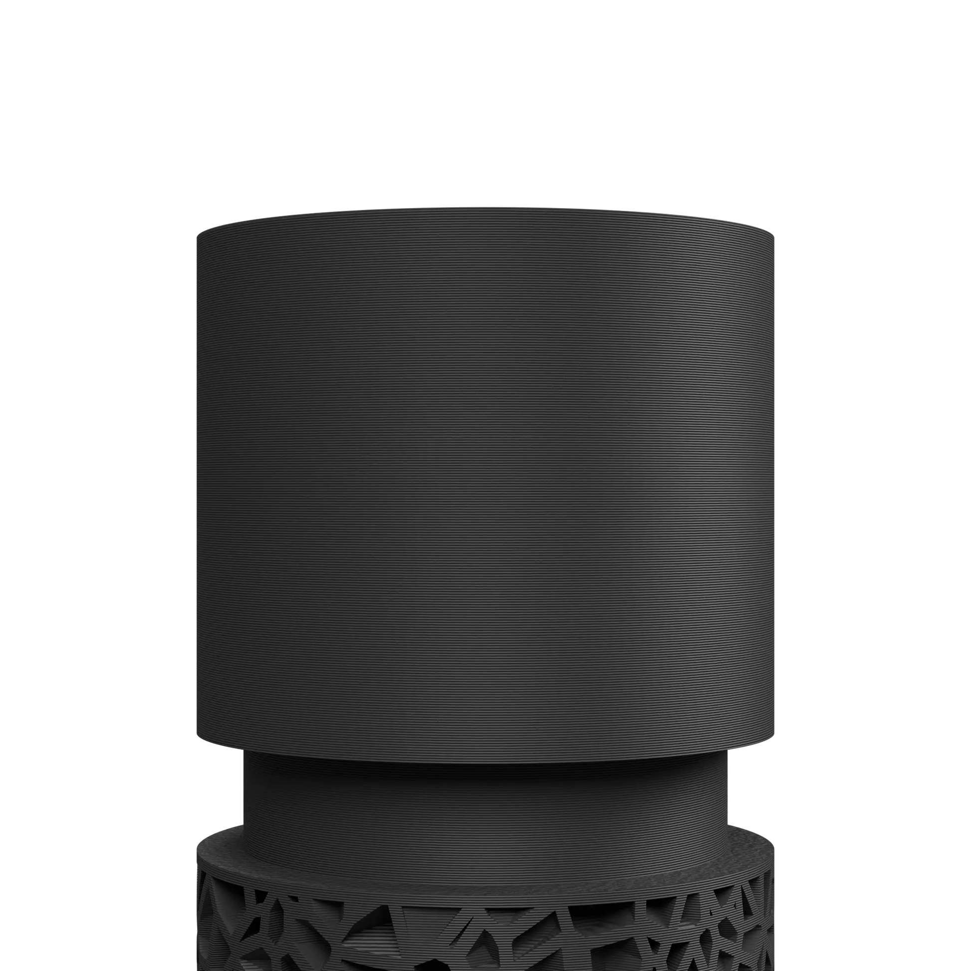Il vaso decorativo Vori_round si distingue per la sua silhouette cilindrica pulita, impreziosita da una base con un motivo geometrico audace e traforato.