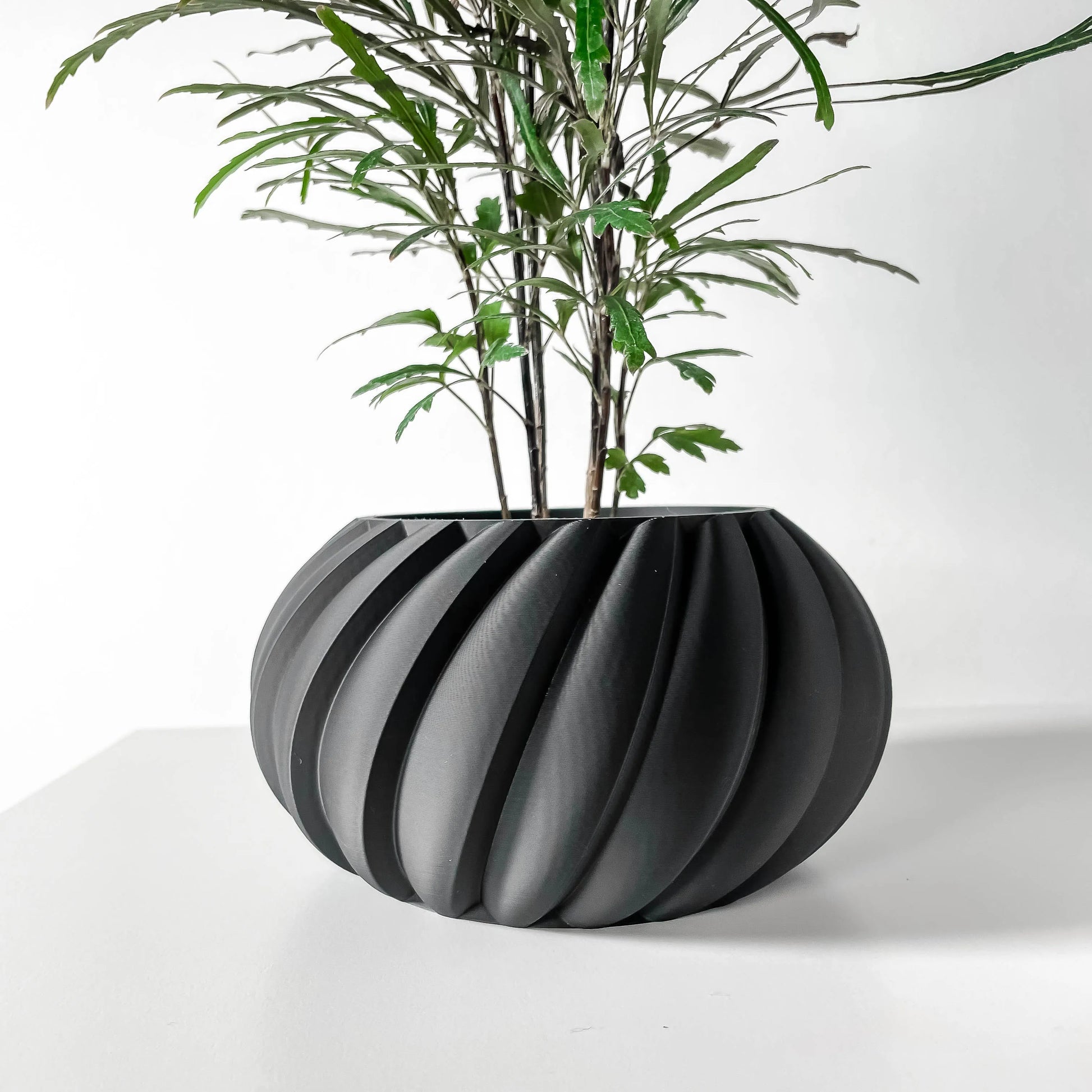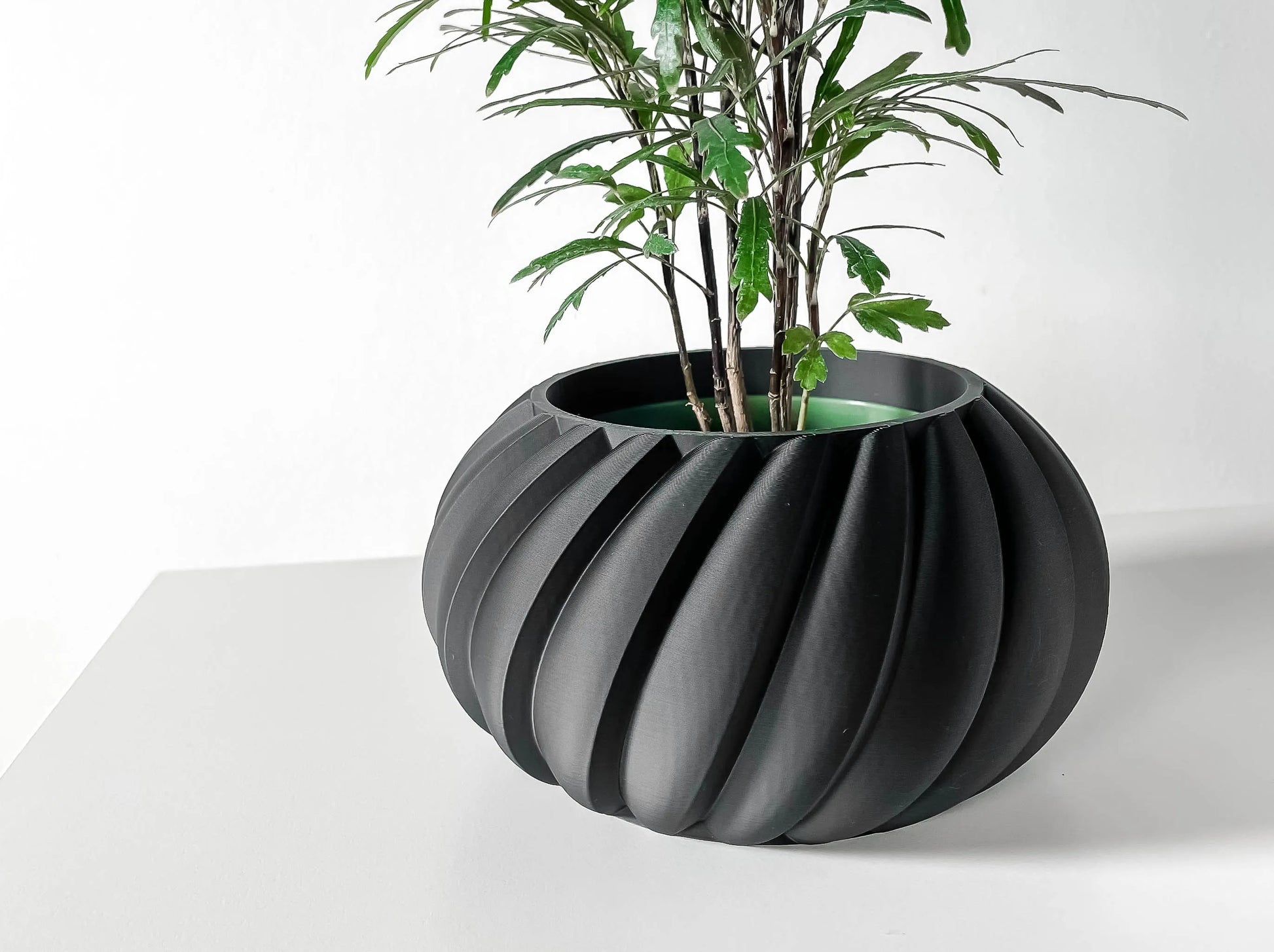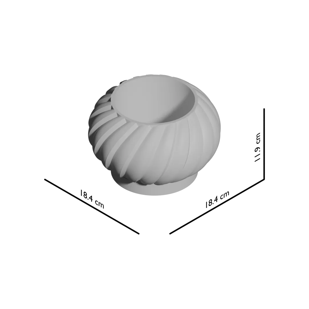Ses lignes courbes et généreuses forment une sphère parfaite, tandis que sa surface torsadée joue avec les ombres et la lumière, révélant des reflets satinés qui animent la matière. Plus qu'un simple pot, Oro est une véritable pièce sculpturale qui mettra en valeur vos plus belles plantes.