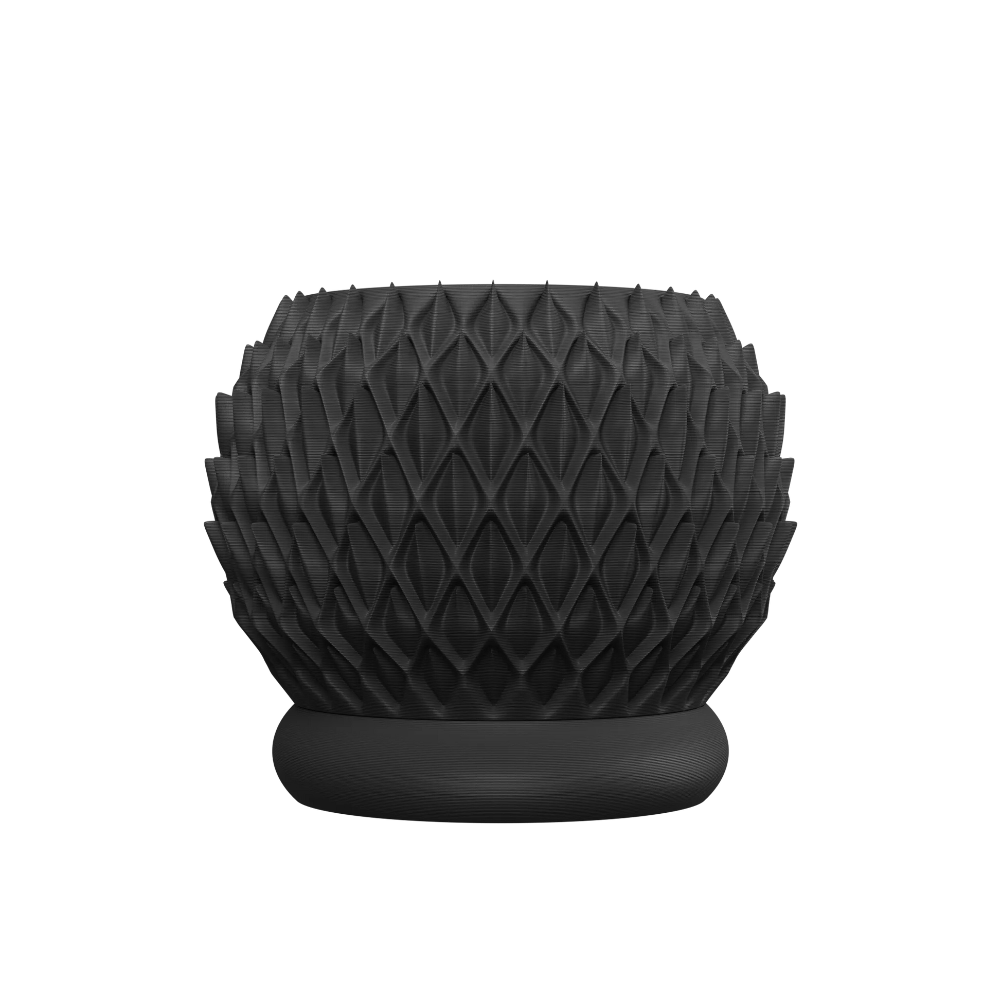Le Pot décoratif Petal se distingue par sa silhouette sphérique et sa texture diamantée captivante, créant une pièce maîtresse pour toute décoration.