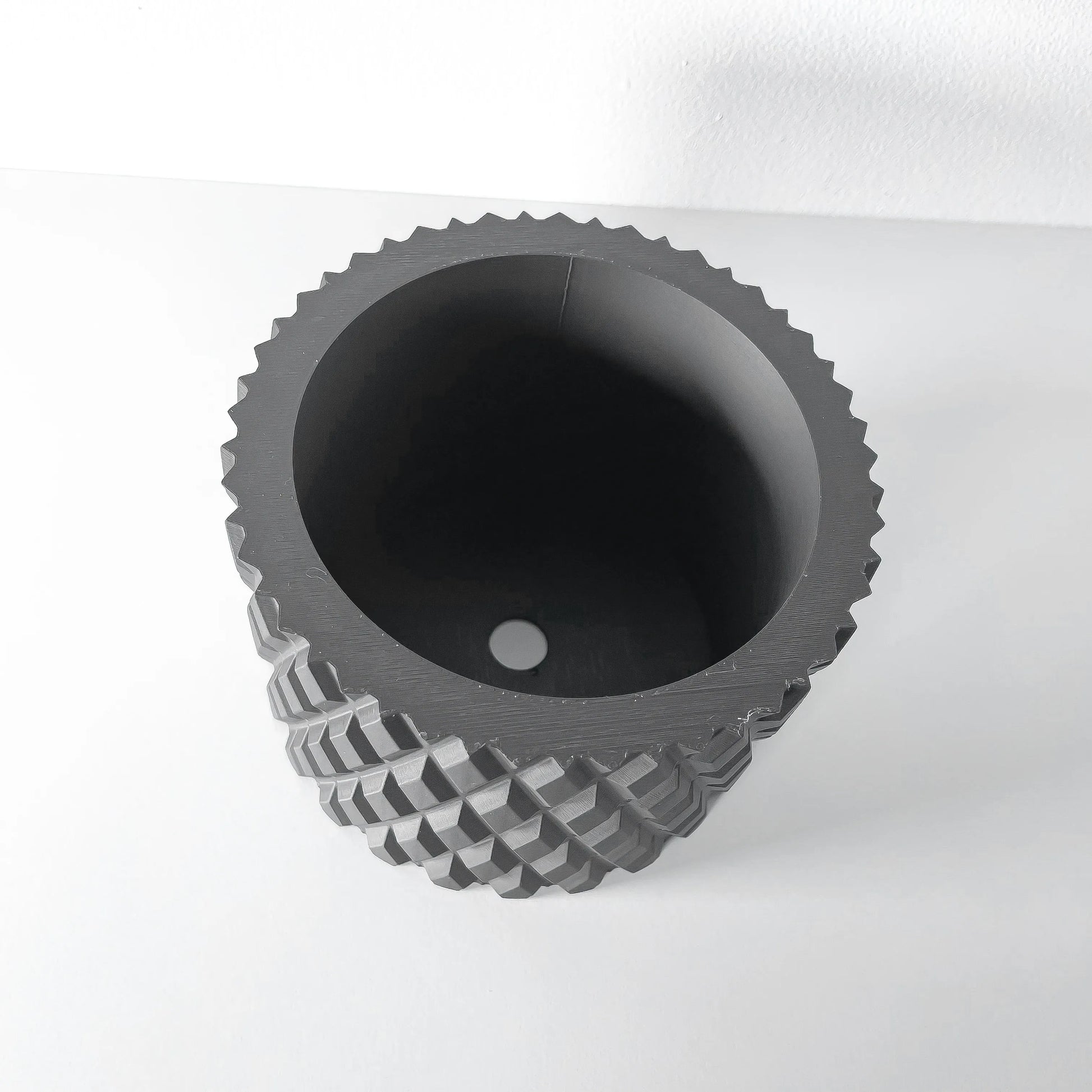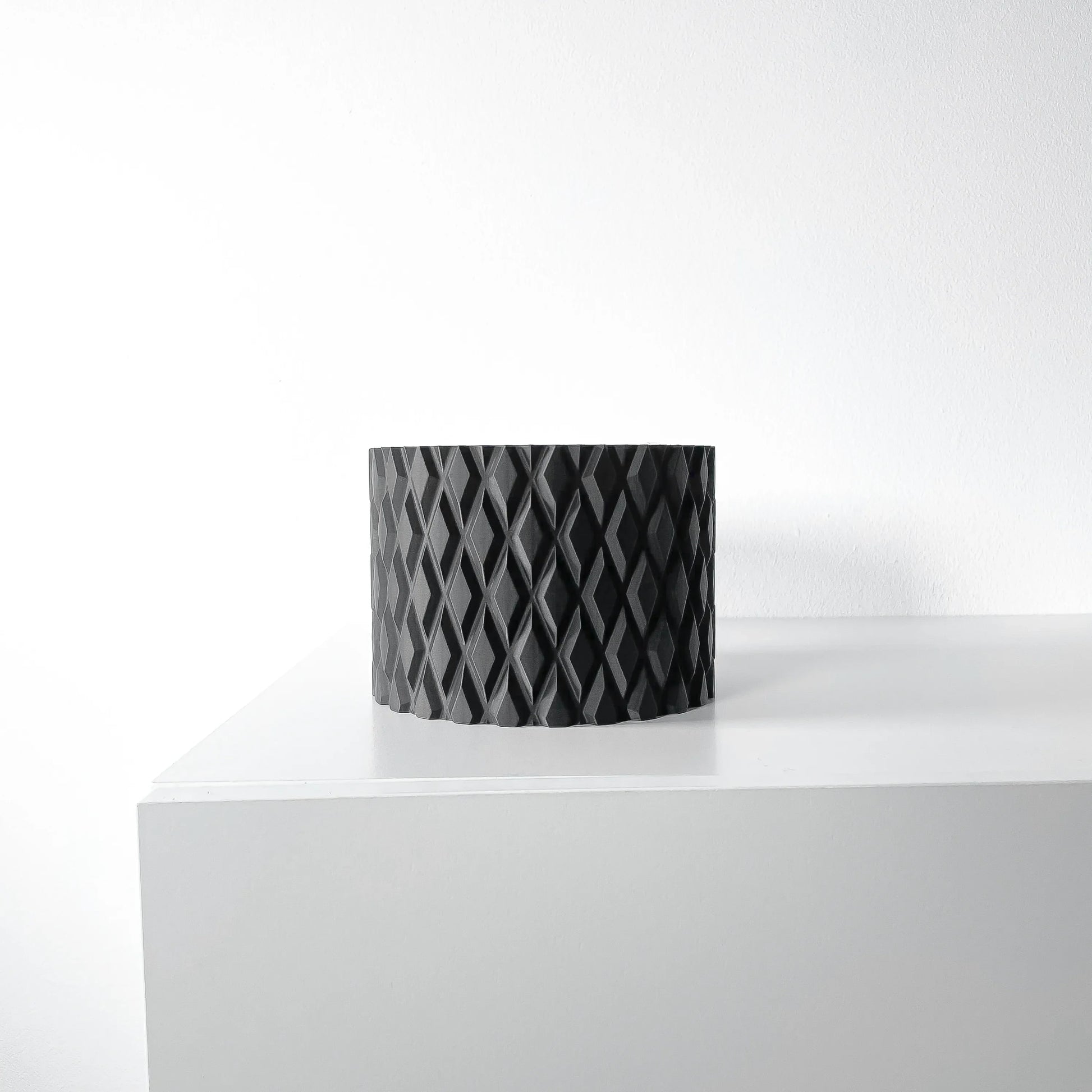 Ses lignes pures et cylindriques servent de toile de fond à une texture géométrique complexe. Chaque facette en diamant capture et réfléchit la lumière différemment, donnant à l'objet une profondeur et un dynamisme constants. Plus qu'un simple pot, Pexil est une pièce sculpturale qui apporte une touche de modernité architecturale à votre intérieur.
