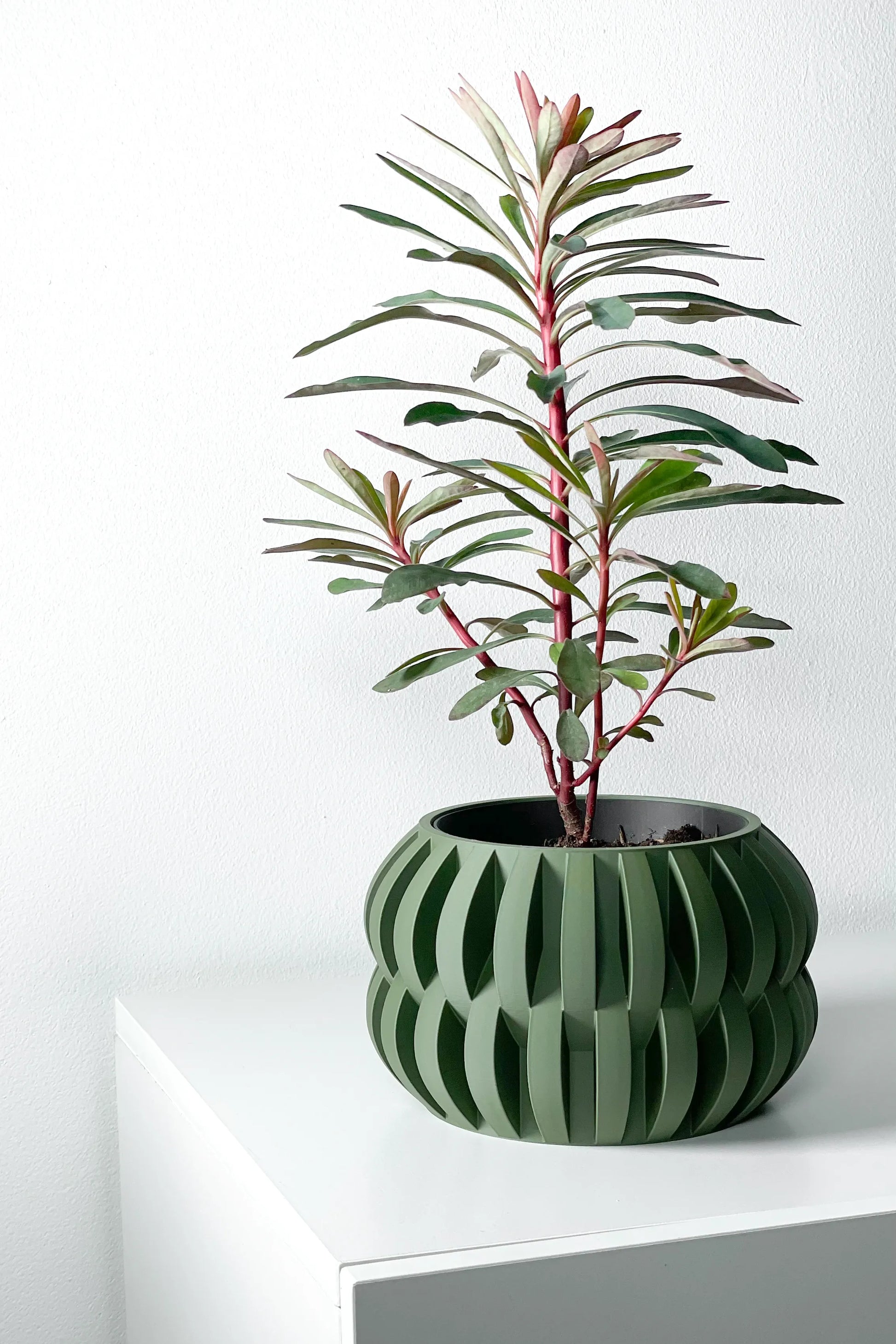 Ses courbes doubles et superposées créent un volume harmonieux, tandis que sa texture cannelée joue avec la lumière, dessinant des ombres profondes qui accentuent sa géométrie. Chaque angle révèle une nouvelle perspective, transformant ce pot en une véritable œuvre d'art pour votre intérieur.