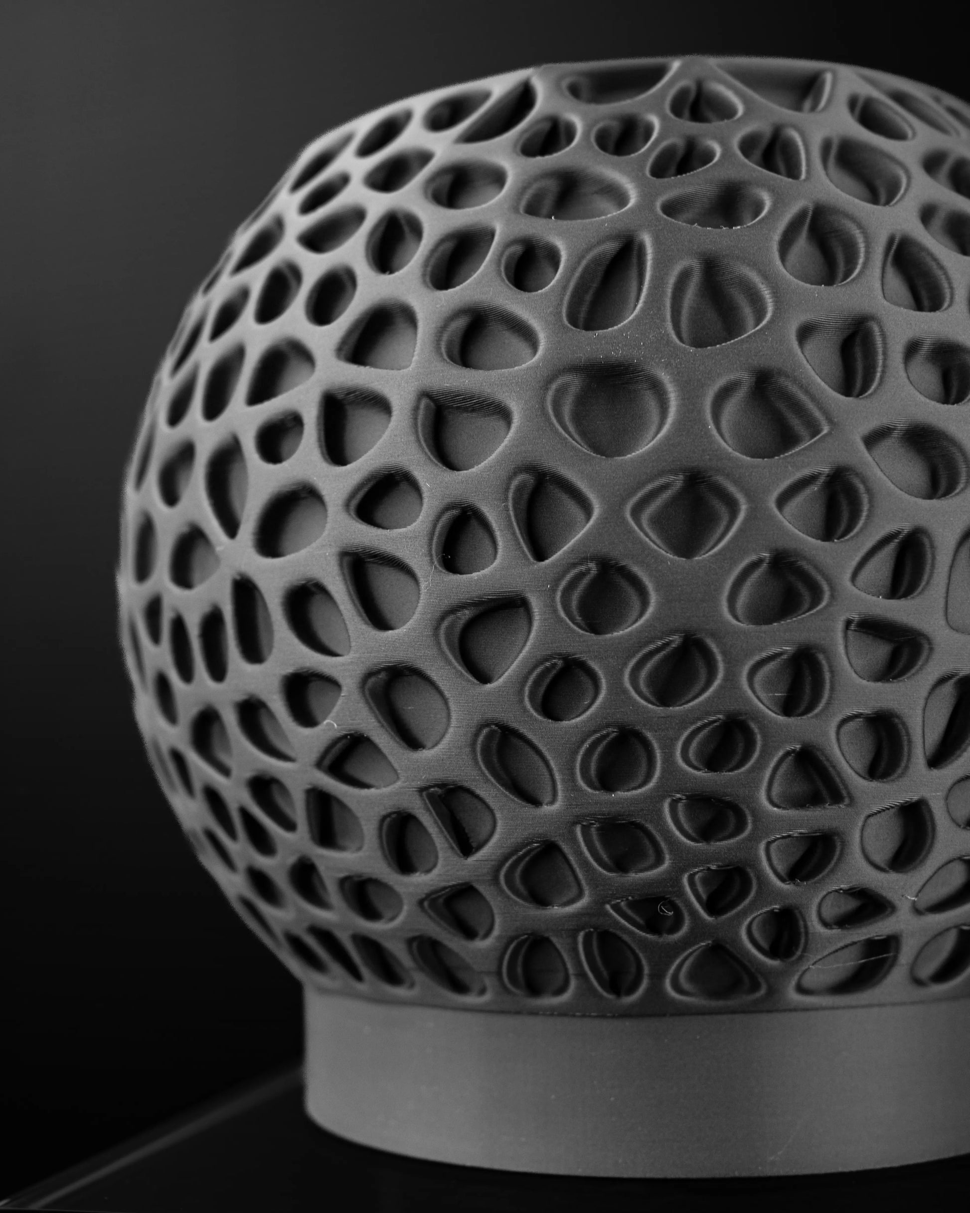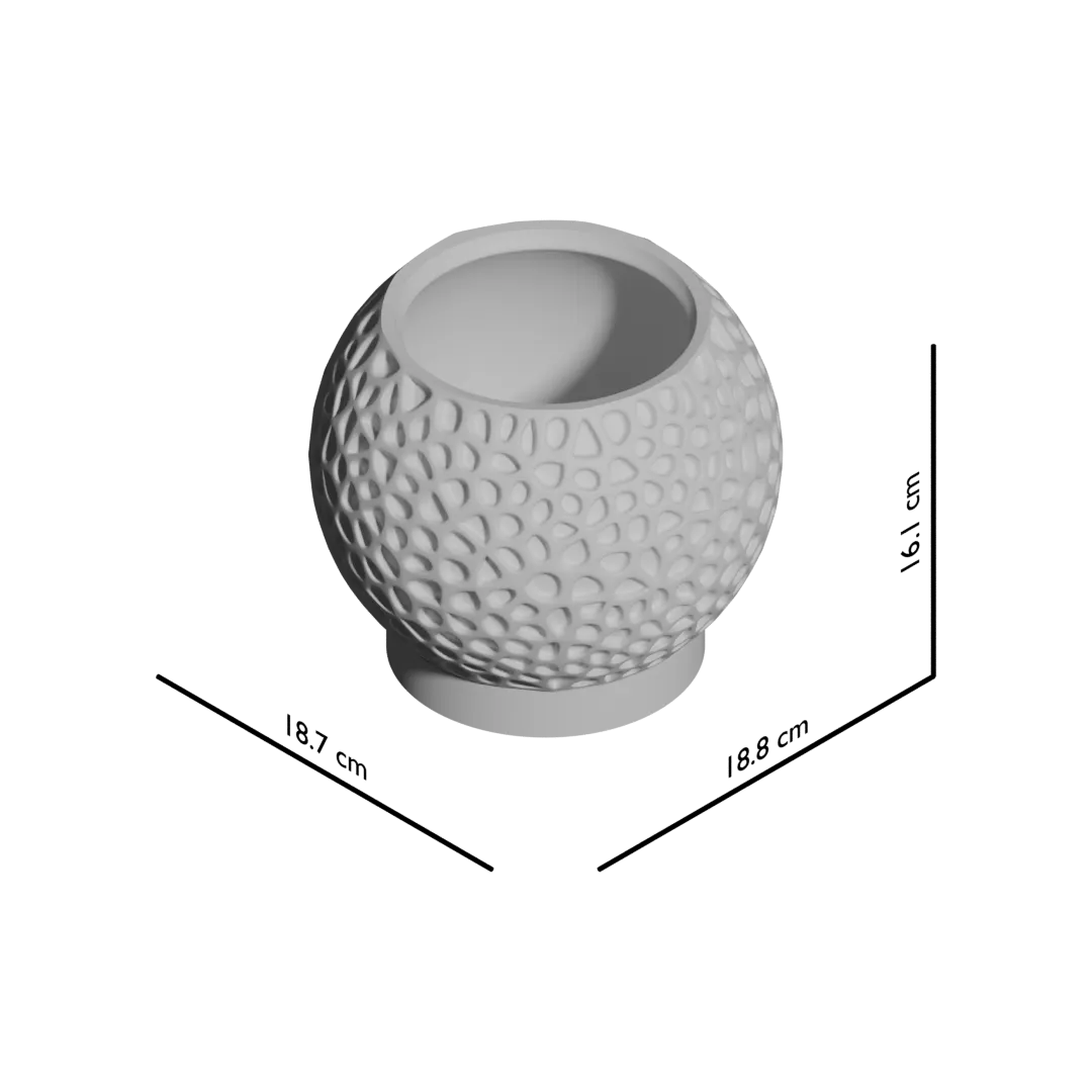 Ses courbes généreuses dessinent une sphère harmonieuse, tandis que sa surface, percée de multiples cavités organiques, évoque une structure naturelle complexe. Chaque alvéole capture la lumière différemment, conférant à l'objet une profondeur visuelle et un caractère sculptural unique qui sublime instantanément votre décoration.