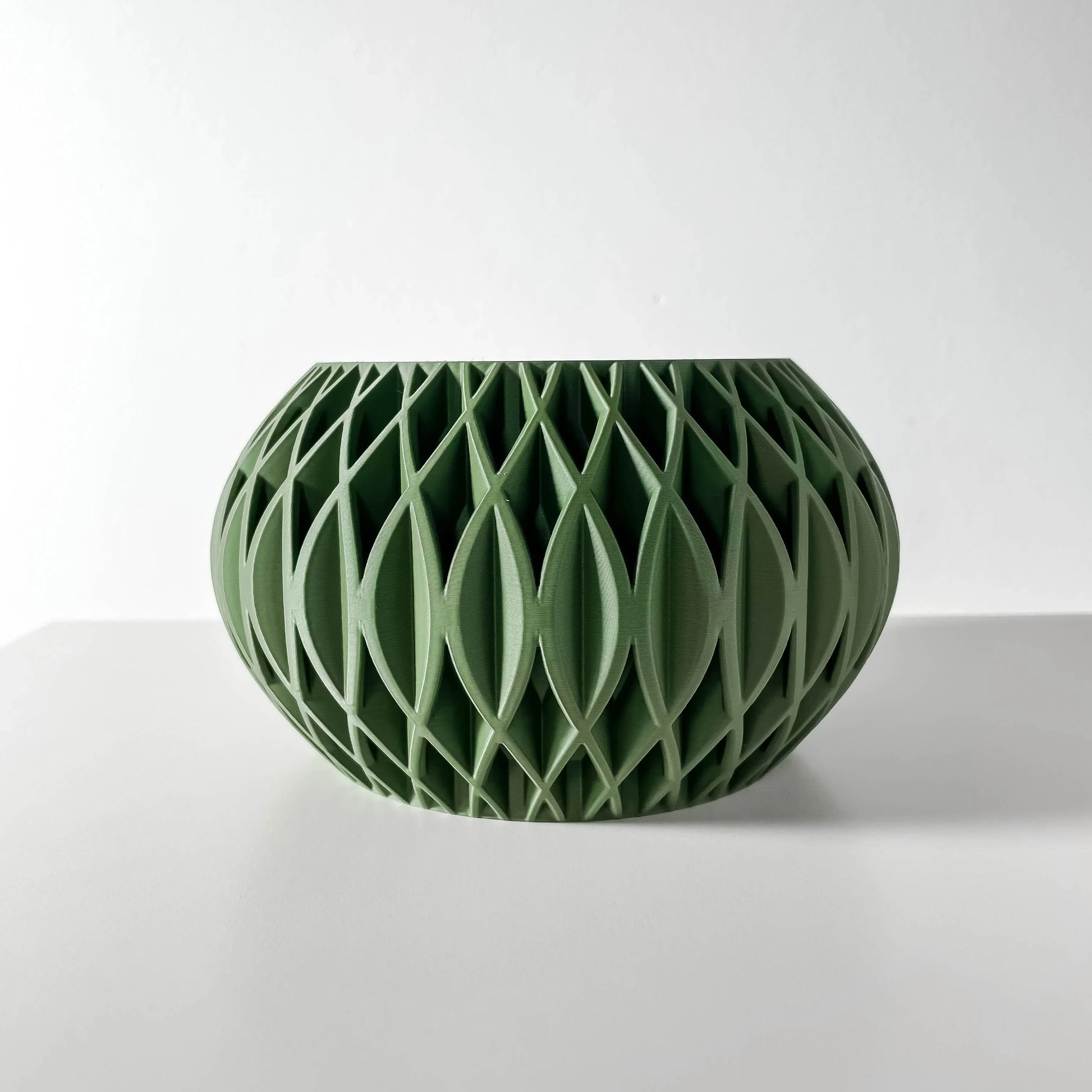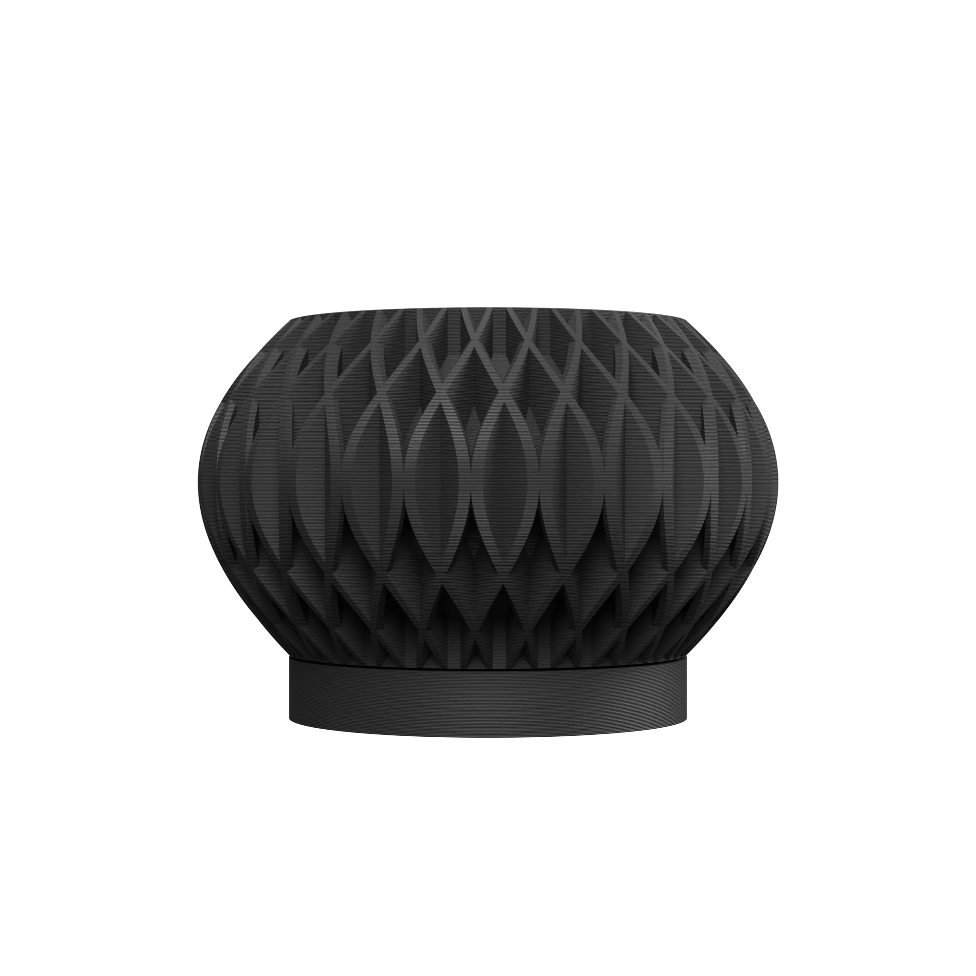 Le pot décoratif Revan se distingue par sa silhouette généreusement arrondie et sa texture complexe d'entrelacs géométriques, offrant une présence visuelle captivante.