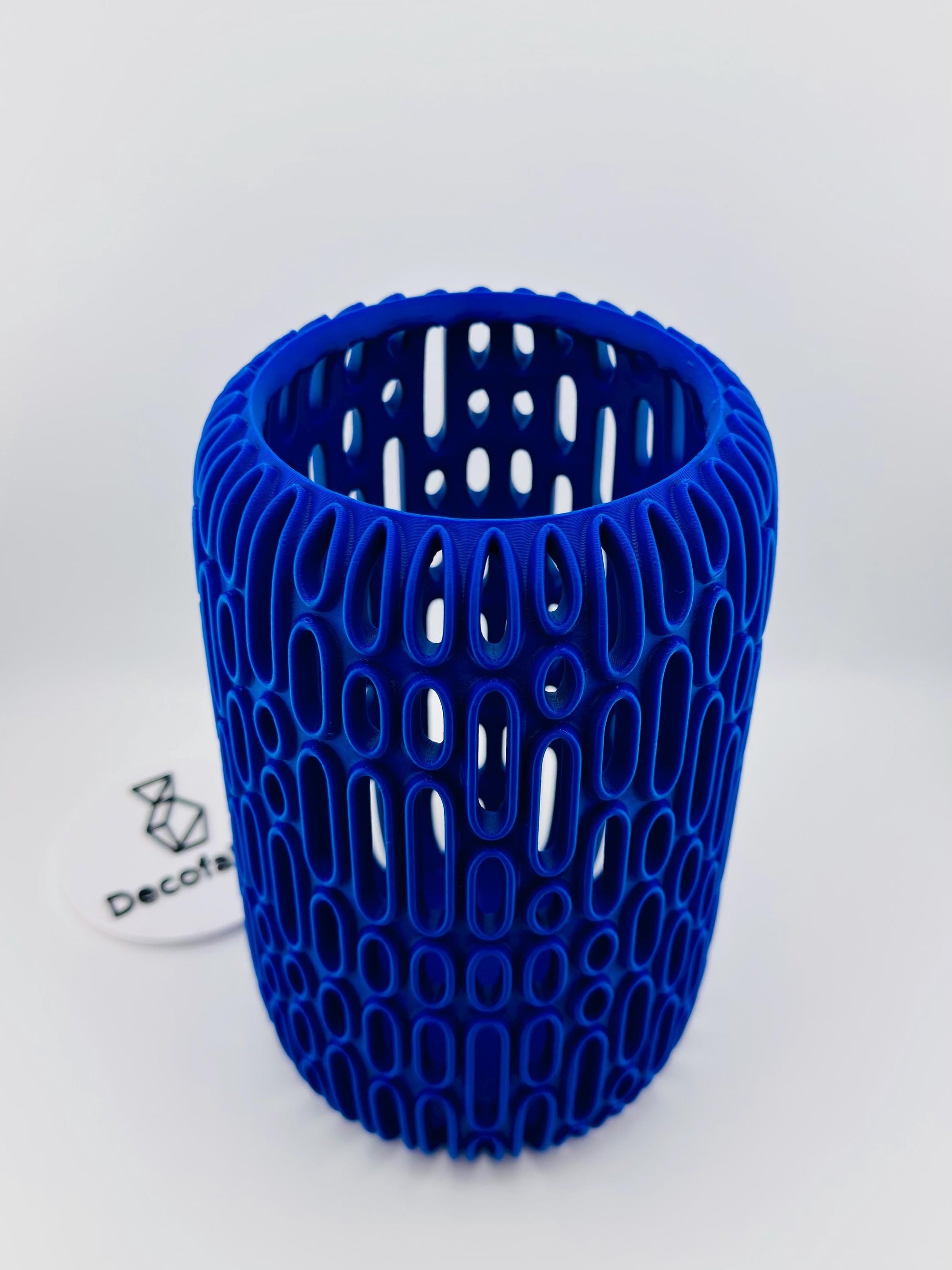Le vase Breach se distingue par sa structure ajourée aux formes ovales allongées, inspirées de motifs biomorphiques. La lumière traverse ses ouvertures et projette des ombres graphiques, transformant ce vase en objet d’art à part entière.