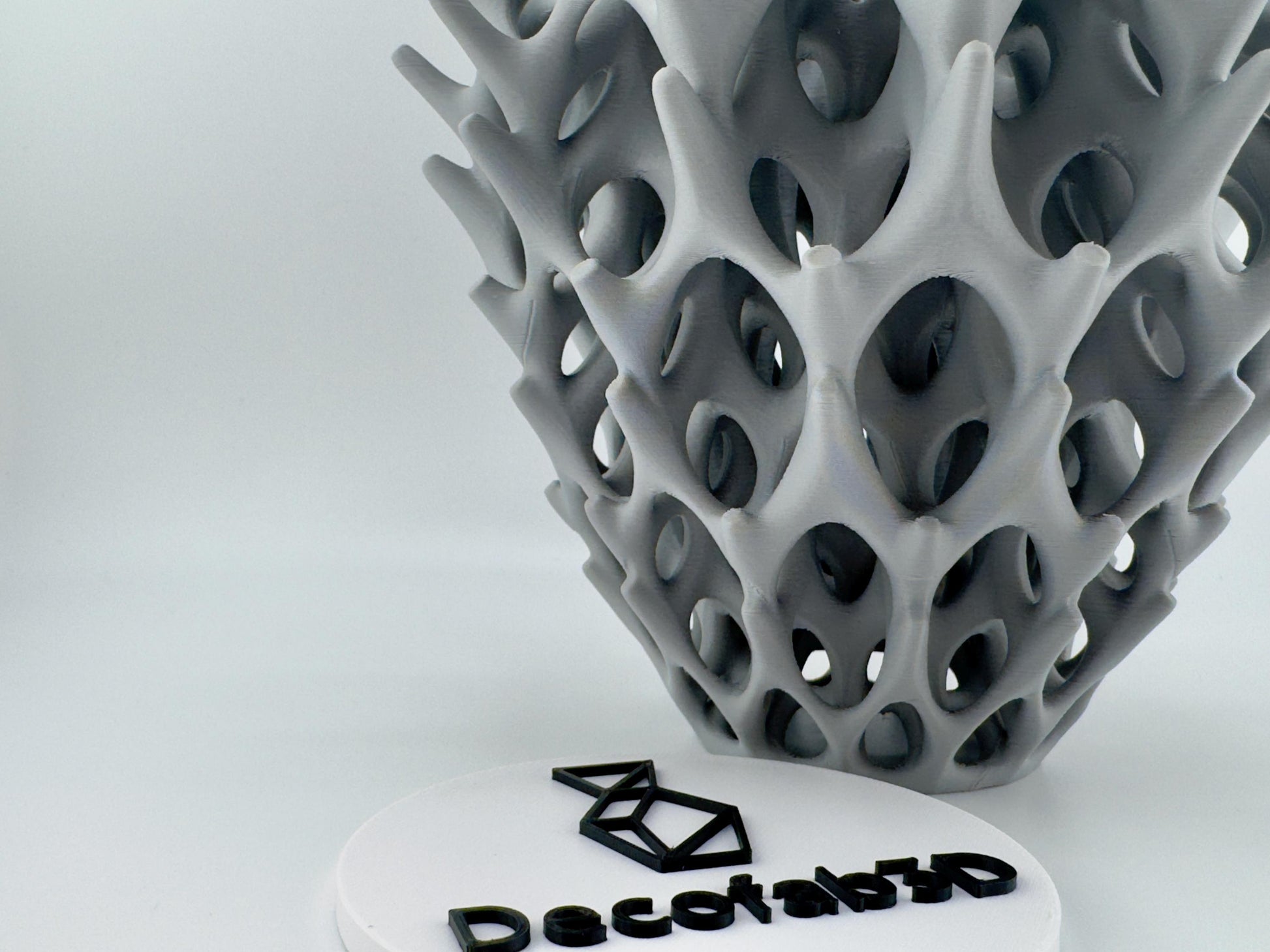 Le vase Invader se distingue par sa structure ajourée organique et son volume sculptural. La lumière traverse ses ouvertures et crée un jeu d’ombres graphique qui transforme instantanément l’ambiance d’une pièce.