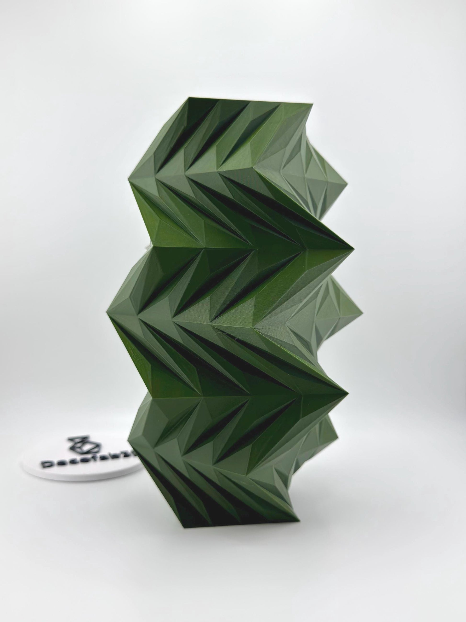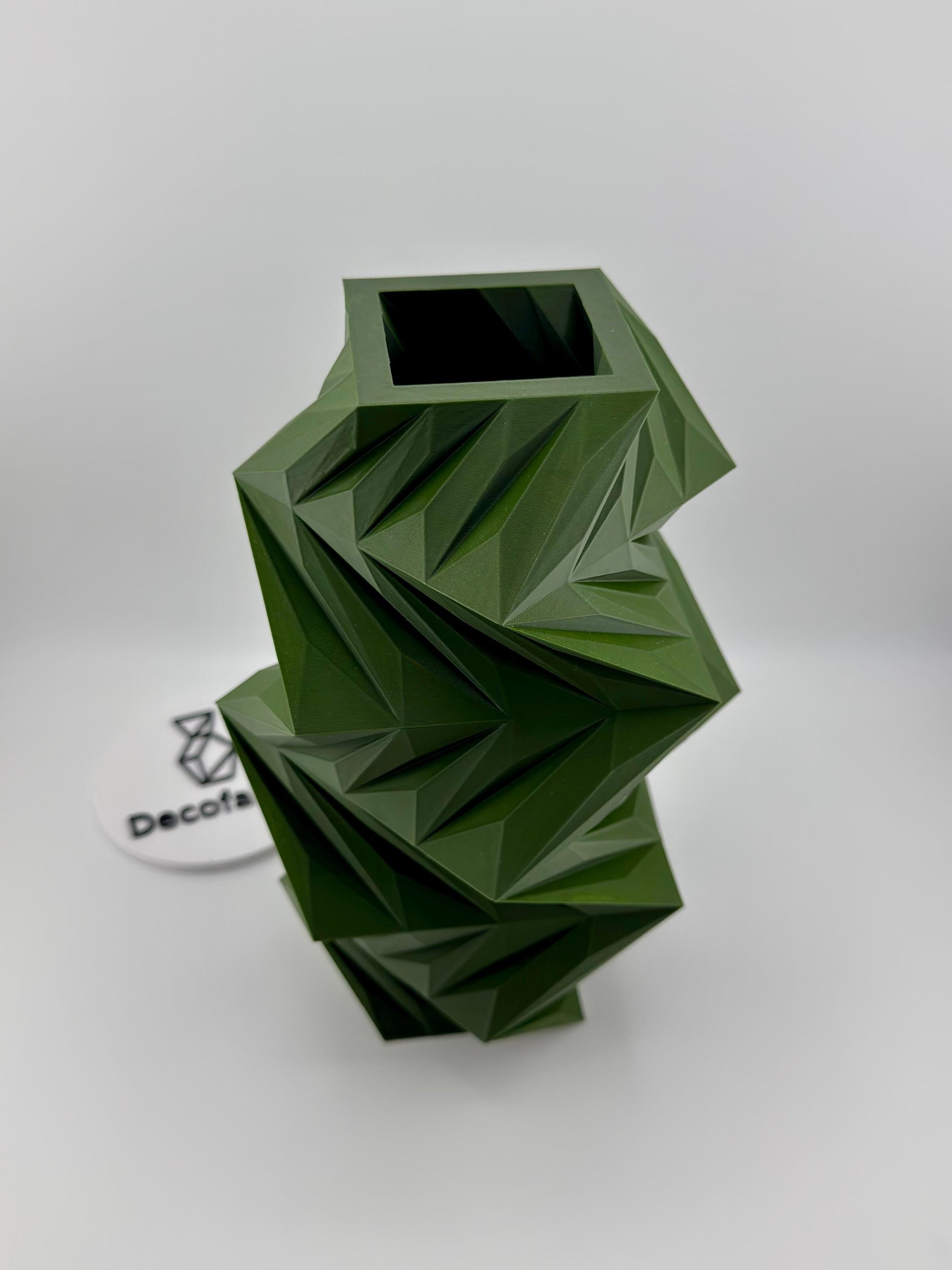 Le vase Twis se distingue par ses facettes triangulaires et son mouvement torsadé audacieux. La lumière glisse sur ses plans anguleux, créant des reflets dynamiques et un rendu graphique puissant.